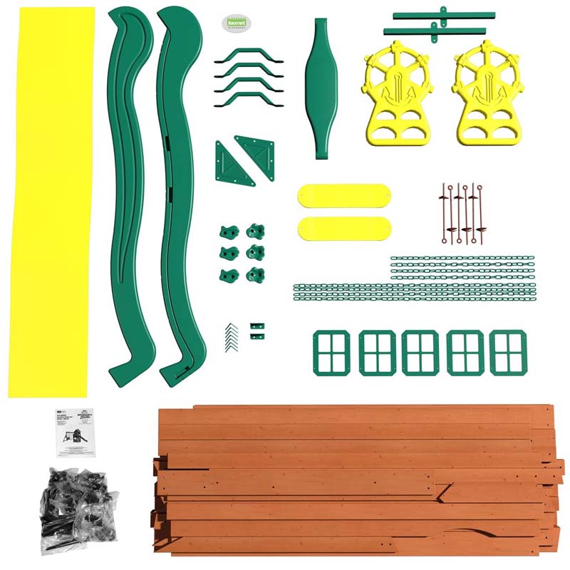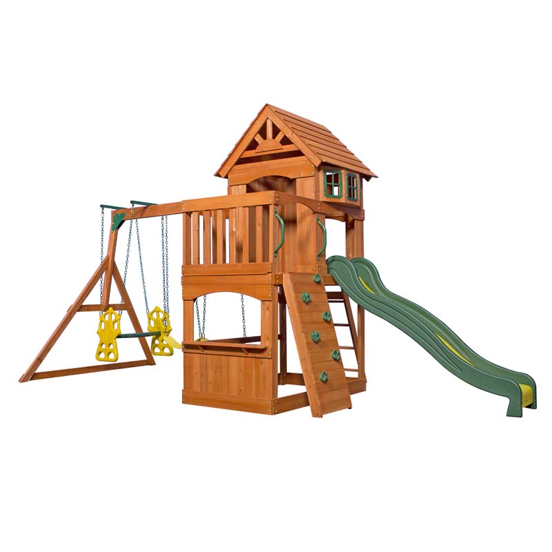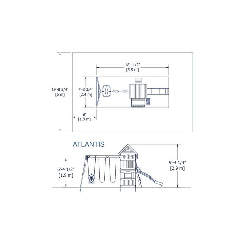 - La portique Atlantis un de nos jeux de balançoires les plus populaires pour les enfants, comprenant un fort de jeu avec toboggan, un club-house dans l’arrière-cour, une balançoire, 2 balançoires et un bac à sable pour enfants.