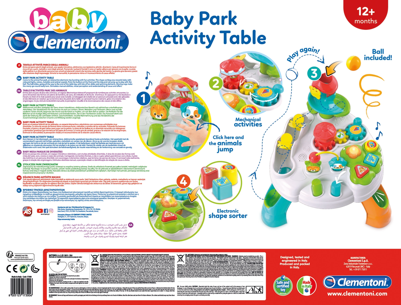 • Une table électronique interactive riche dans le monde amusant des parcs à thème. Contient de nombreuses activités: la zone des formes est interactive avec des lumières et des sons, les rouages tournent et les personnages se déplacent lorsque les boutons sont enfoncés. Comprend un parcours amusant avec des balles et des toboggans qui se termine dans les pieds de la table. Stimule les compétences manuelles, la perception visuelle et la reconnaissance de la relation de cause à effet.