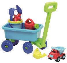 Votre enfant sera ravi de pouvoir découvrir le monde avec son petit chariot rempli de différents jouets comme un seau, un tamis, un râteau, une pelle, et des formes pour faire de jolis château en forme d’étoile de mer et de crabe, ainsi qu’un camion benne. Au total, c’est 8 accessoires regroupé dans le chariot.