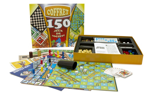Coffret regroupant tous les jeux classiques pour s’amuser en famille. Il est idéale pour passer le temps pendant les vacances ! De nombreux accessoires permettant de jouer à 150 jeux de société : chevaux, dames, oies, marelle, dés, cartes, roulette, loto, etc,