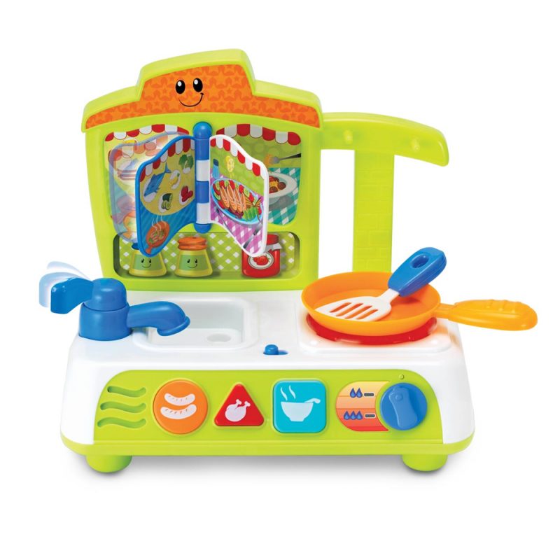 -Tourne le robinet d’eau pour écouter des sons d’eau réalistes. -Des sons amusants et des mélodies joyeuses.