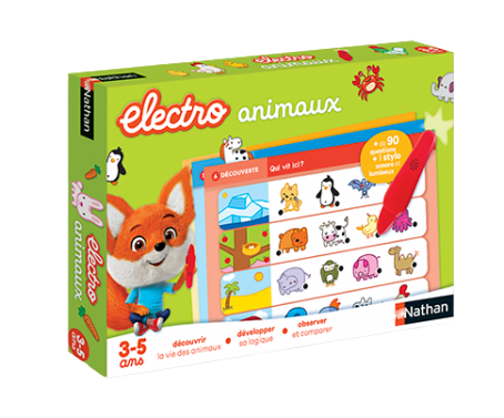 Un jeu électronique de questions-réponses pour découvrir les animaux et faire ses premiers apprentissages. Pour chaque question, l’enfant pointe son stylo sur la bonne réponse. Si le stylo s’allume, bravo, la réponse est bonne!