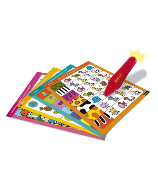 Des questions variées sur les lettres, les chiffres, les animaux avec une autocorrection sonore et lumineuse qui permettra à l’enfant de jouer seul.