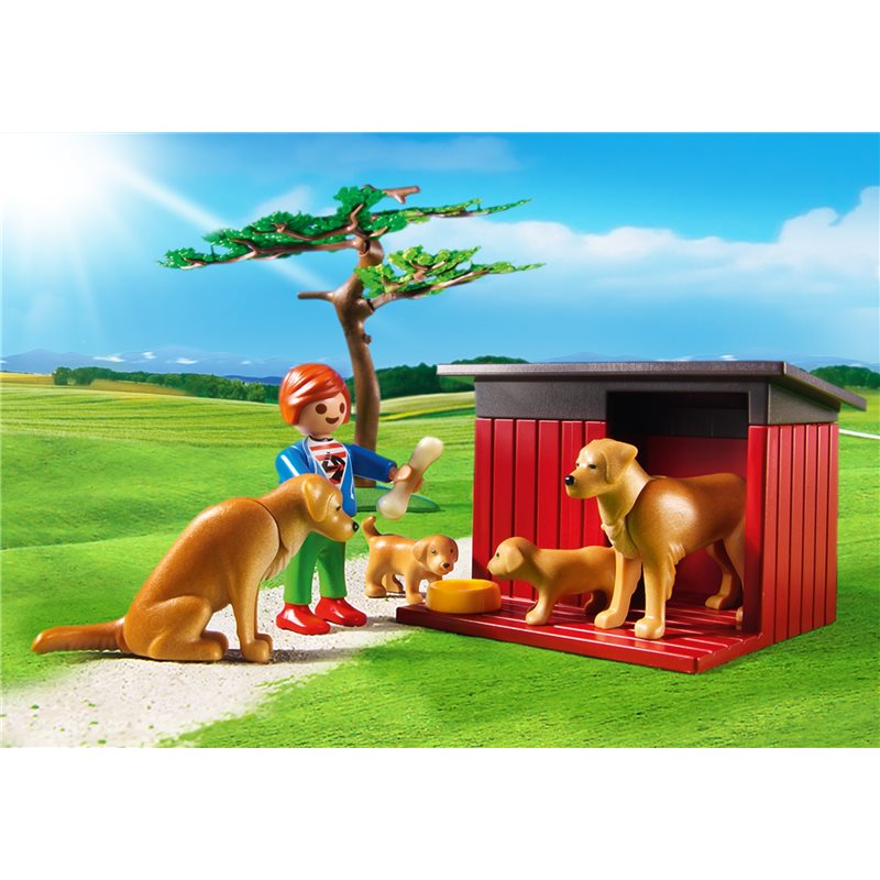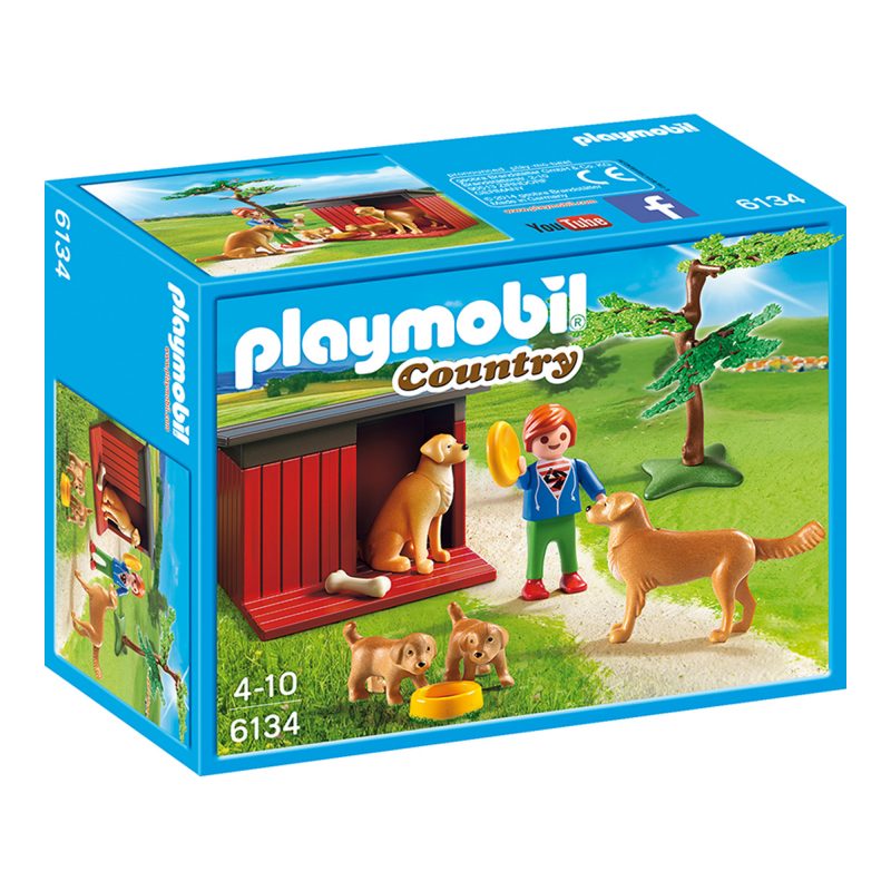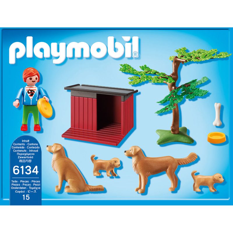 La niche est au complet ! Pour qui sera cet os ? Les enfants s’inventent des tas d’aventures avec le coffret Enfant avec goldens retrievers – Playmobil Country 6134. Ainsi leur imagination grandit et eux aussi.