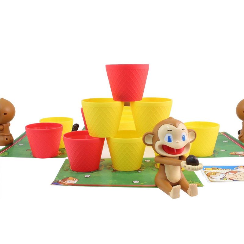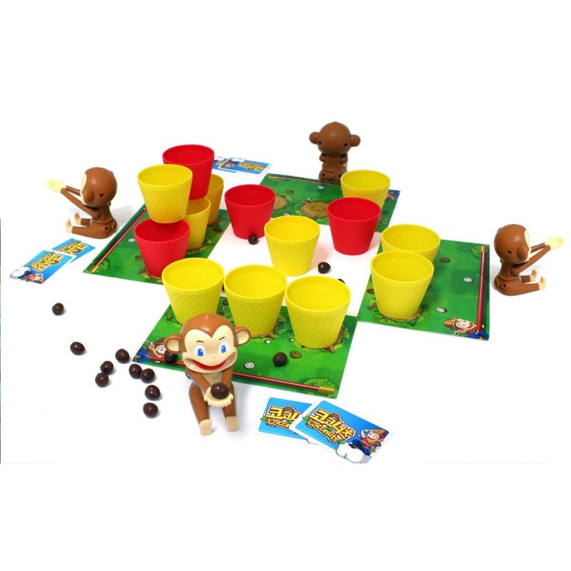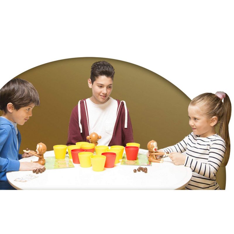 • Dans ce jeu d’ambiance pour petits et grands, chaque joueur dispose d’un petit singe qu’il va utiliser pour catapulter les noix de coco dans les gobelets afin de les récupérer sur sa planche de jeu .