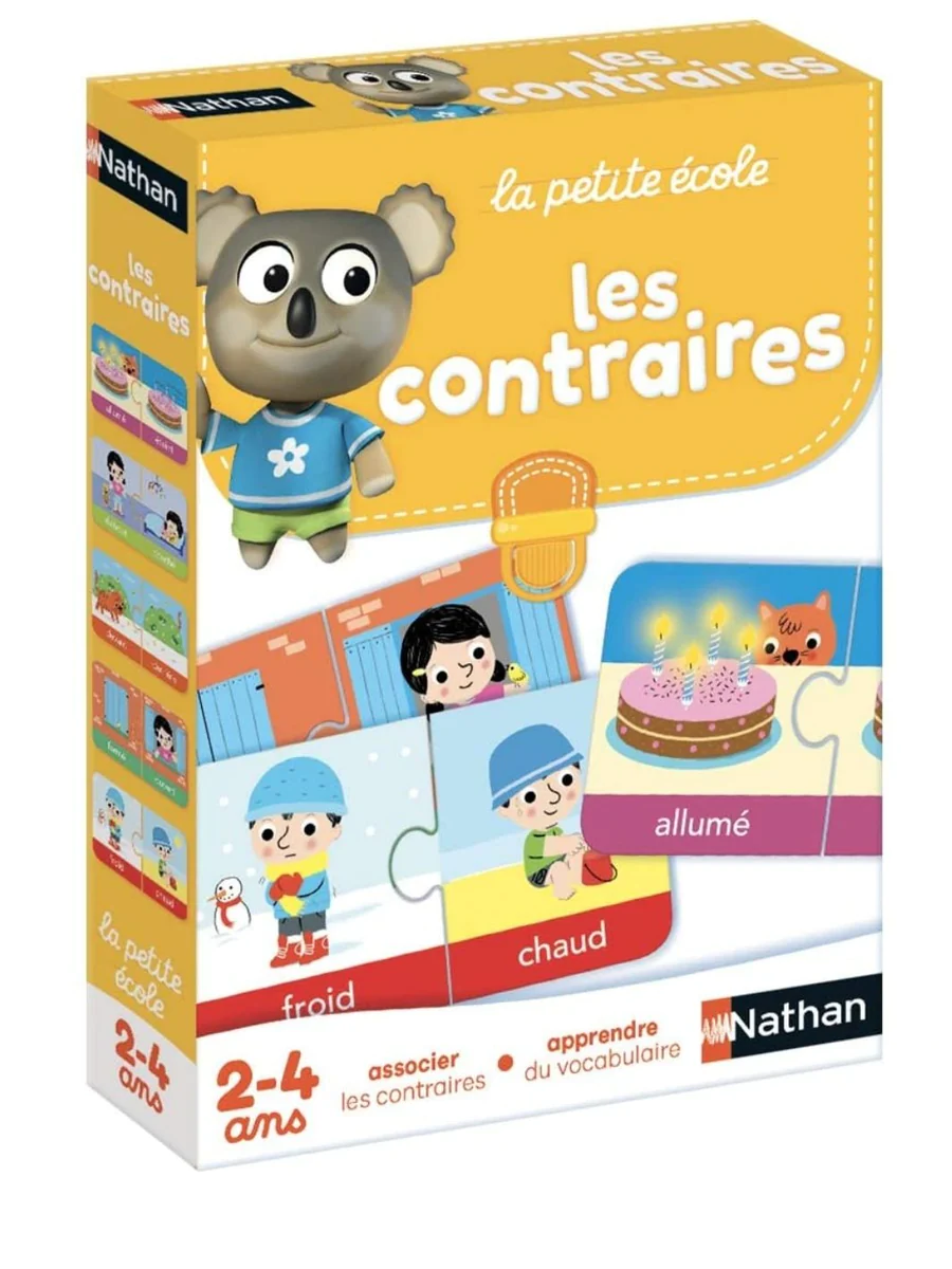 ✅ Des images affectives aux couleurs très gaies. L’enfant joue à associer un élément à son opposé. Il développe son vocabulaire en apprenant à nommer et à décrire les images.