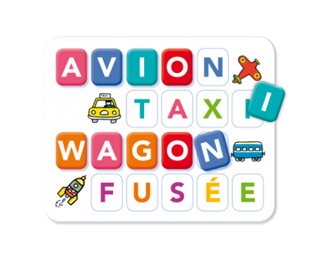 6 jeux progressifs pour apprendre à écrire ses premiers mots, en jouant seul ou à plusieurs. De grandes planches illustrées et des jetons aux couleurs très gaies. L’enfant compose des mots de 3 à 5 lettres en s’aidant du modèle : les animaux, les véhicules…