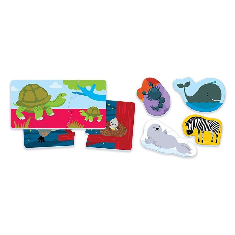 Un jeu d’association pour apprendre à associer les mamans animaux et leur petit mais aussi à reconnaître leurs milieux naturels respectifs.