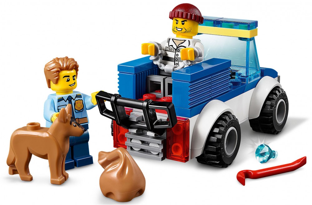Les enfants aiment incarner des héros du quotidien vont adorer ce jouet LEGO City L’unité cynophile de la police (60241) . Le set comprend une formidable voiture de police dans laquelle peuvent prendre place le policier et son fidèle chien policier, une bijouterie avec des pierres précieuses et un voleur qui manie un pied-de-biche. Le scénario idéal pour les petits combattants du crime qui débordent d’imagination. Ce set de jeu pour enfants de 4 ans et plus inclut un guide de construction papier facile à suivre et une brique de démarrage spéciale qui permettent aux plus jeunes d’éprouver la fierté de construire seuls leurs jouets LEGO. De plus, avec l’appli gratuite LEGO Life pour smartphones et tablettes, les enfants bénéficient d’Instructions PLUS, un guide de construction interactif comprenant des outils de zoom, de rotation et de visualisation, qui font de la construction LEGO un véritable jeu d’enfant. Avec les sets LEGO City sur le thème de la police, les enfants peuvent s’immerger dans des aventures infinies et des scénarios pleins d’action qui reflètent des situations de la vie réelle.