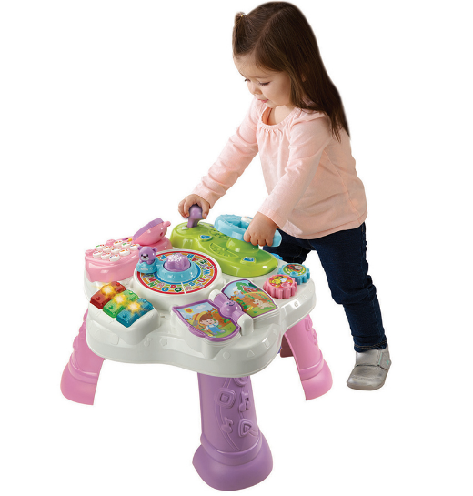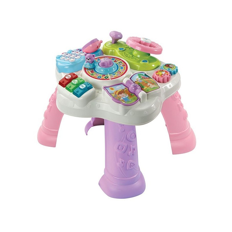 Avec Ma table d’activités bilingue, votre enfant manipule les objets et effectue de nombreuses découvertes : il joue du piano, tourne la page du livre ou encore manipule le volant pour faire avancer le petit ours.