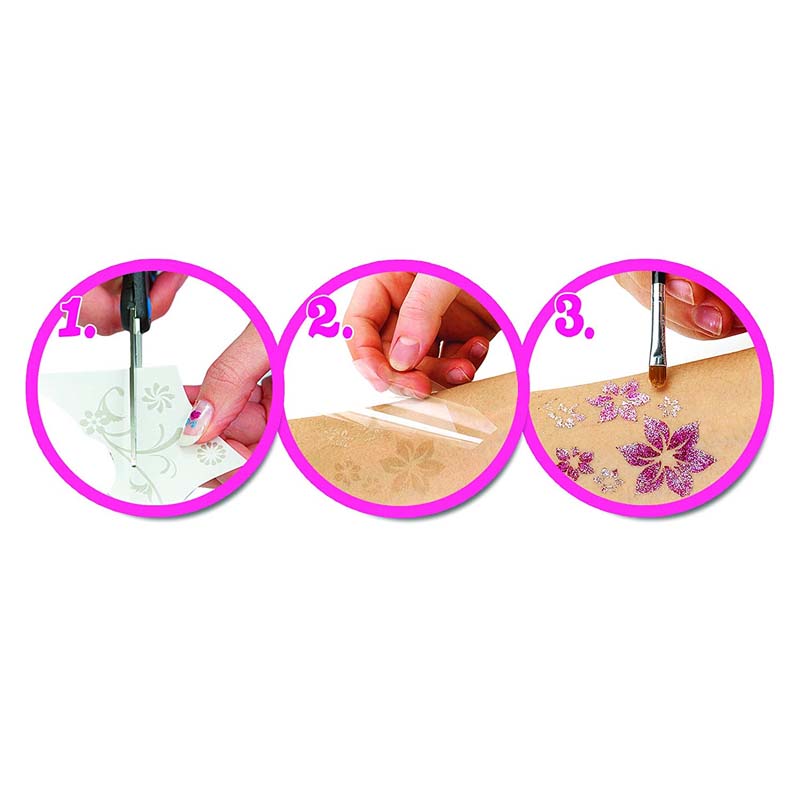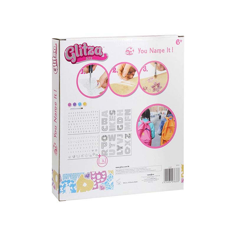 Décore et paillettes tes objets préférés avec Motifs Pailletés Multi Support : You Name it ! de Glitza en composant les mots de ton choix avec le coffret you name it ! ce kit contient: 4 planches de motifs alphabet, 4 pots de paillettes et 1 pinceau.