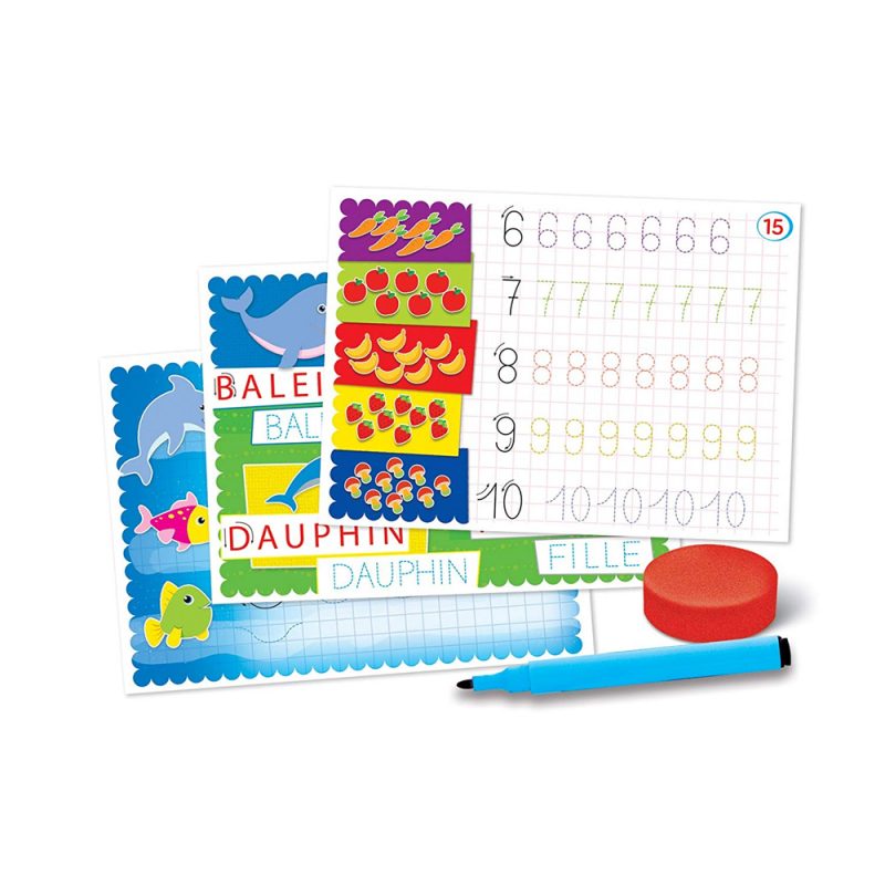 Un jeu simple et amusant pour apprendre à écrire ses premières lettres et ses premiers mots grâce aux ardoises colorées effaçables et à son stylo. De cette façon, l’enfant abordera l’écriture de manière graduelle.