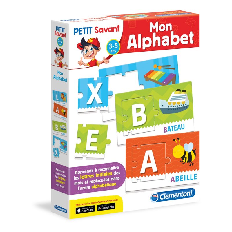 “Mon alphabet” est un jeu éducatif simple et ludique composé de nombreuses pièces illustrées et destinées à enseigner aux enfants de 3 à 5 ans la prononciation des lettres, l’alphabet et à lui faire découvrir comment écrire ses premiers mots.