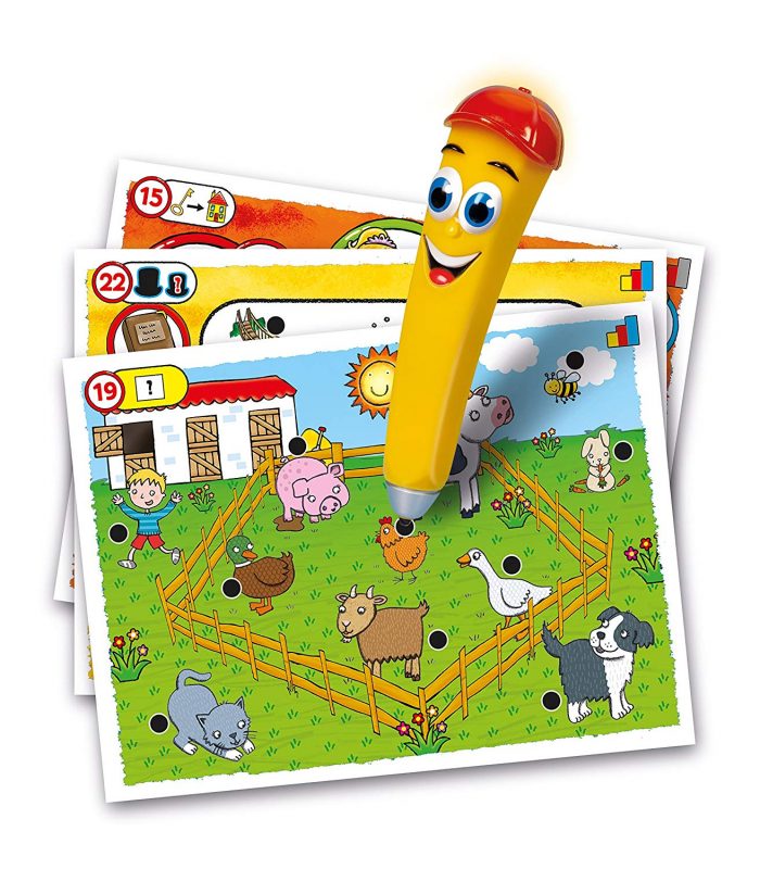 Mon stylo parlant est un jeu conçu pour les enfants de 3 à 5 ans dans le but de développer, dans un contexte ludique, leurs capacités d’observation, et d’enseigner les premiers concepts de stimulation dans l’espace et de dimensions, les formes, les couleurs, etc.