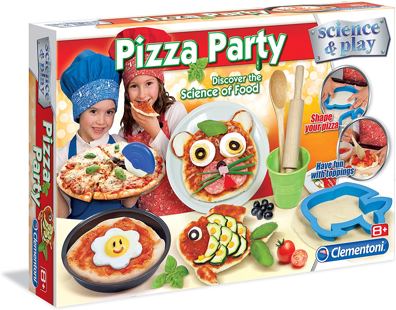 Pour apprendre à préparer une véritable pizza italienne L’emballage contient : un livre de recettes illustré, de la pâte à pizza, un plat à four, des moules à découper la pizza, un rouleau à pâtisserie et une cuillère, un verre doseur, une roulette, un moule pour faire une canzone, une manique, une toque et un tablier de vrai chef cuisinier.
