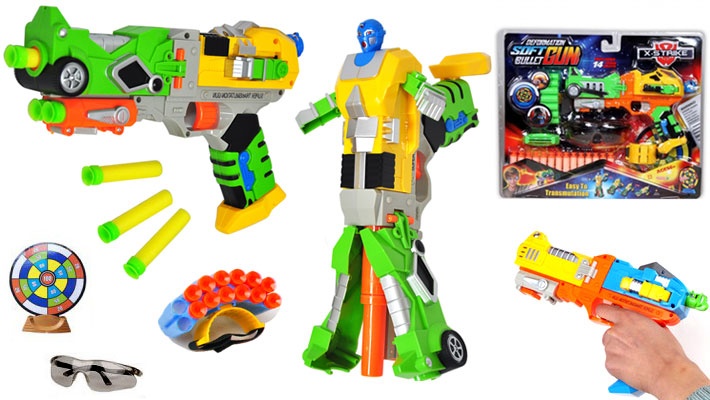 - des conteneurs de balles main / taille Se transforme instantanément du mode pistolet au mode robot!